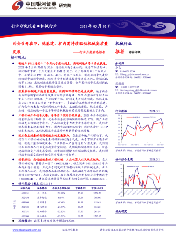 【银河证券】【20210302】两会召开在即,稳基建、扩内需持续驱动机械高质量发展——行业月度动态报告-30页