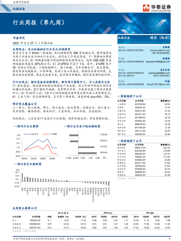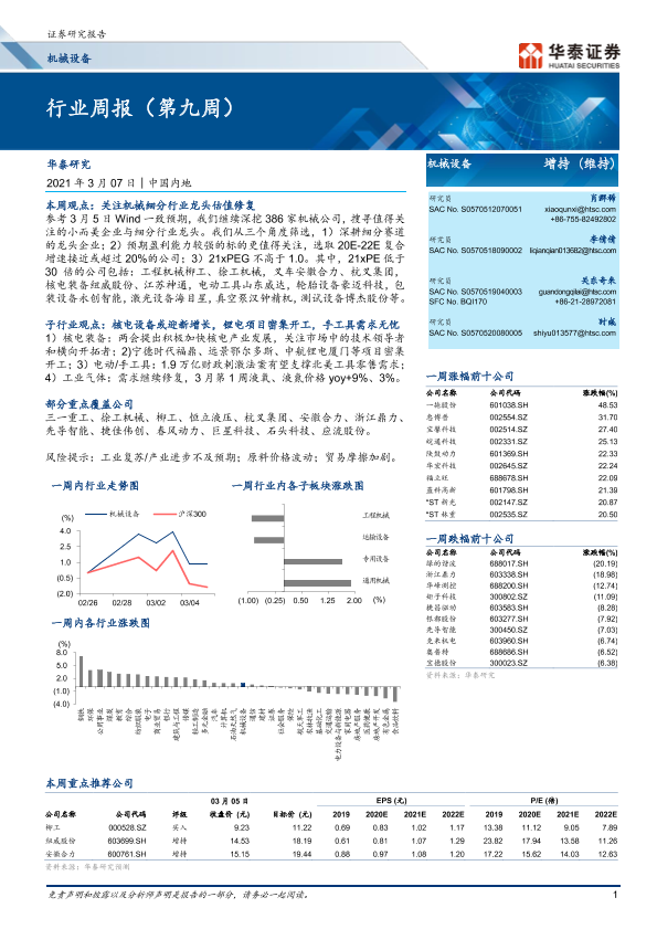 【华泰证券】【20210307】20210307-华泰证券-机械设备行业周报(第九周)-16页