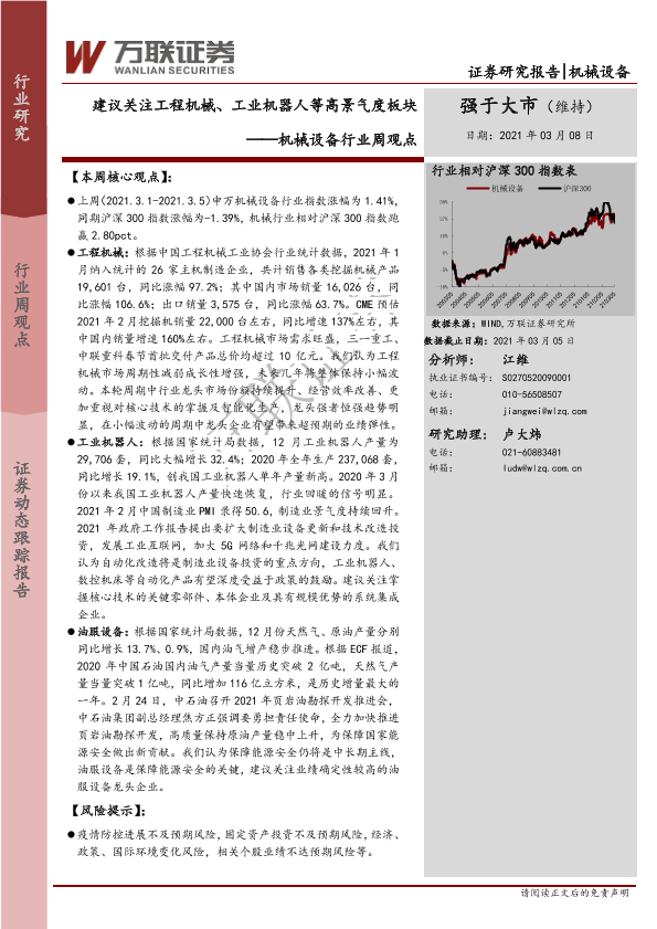 【万联证券】【20210308】20210308-万联证券-机械设备行业周观点:建议关注工程机械、工业机器人等高景气度板块-11页