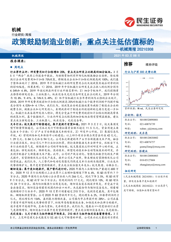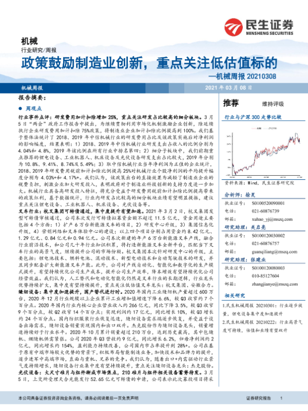 【民生证券】【20210308】20210308-民生证券-机械周报:政策鼓励制造业创新,重点关注低估值标的-22页