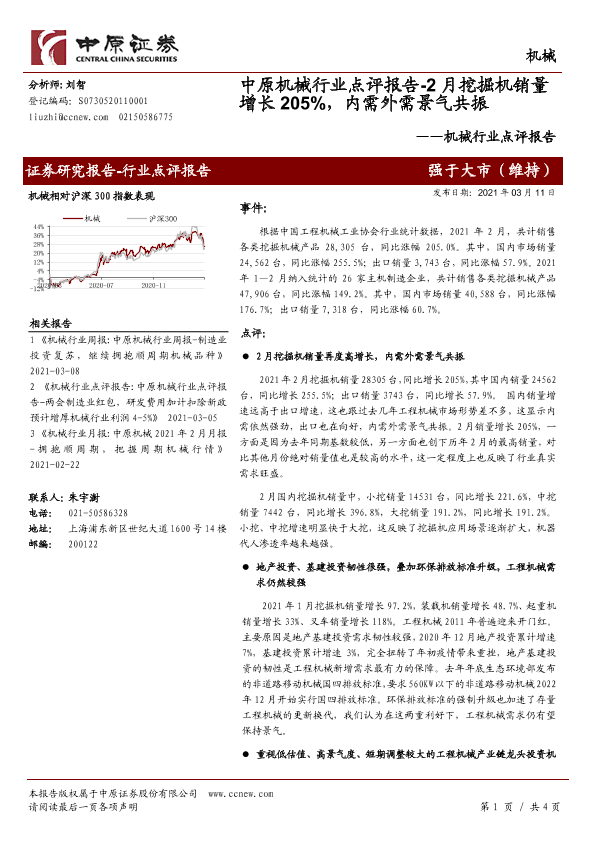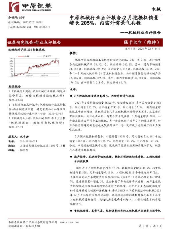 【中原证券】【20210311】2月挖掘机销量增长205%,内需外需景气共振-4页