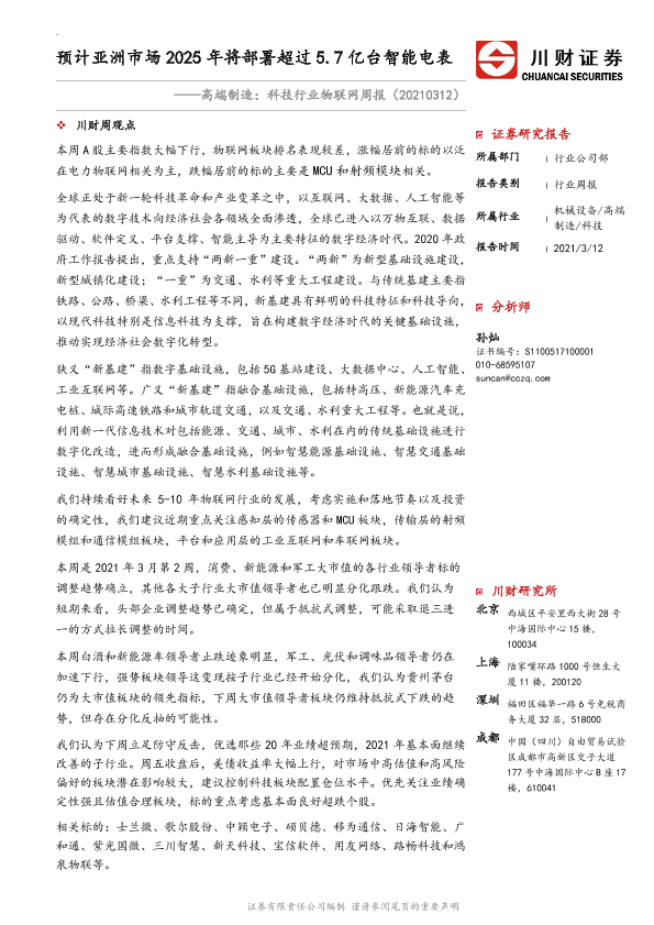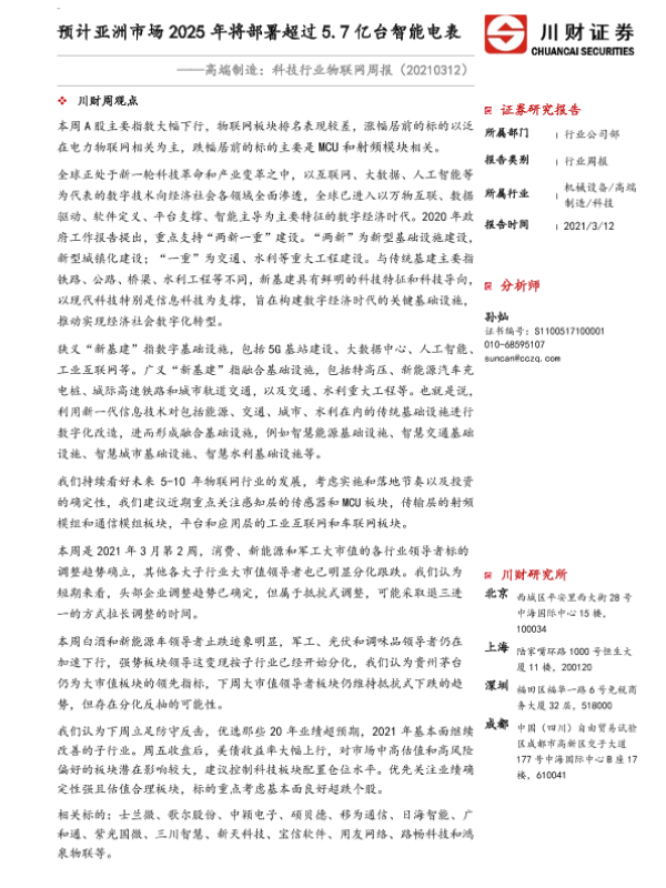 【川财证券】【20210312】高端制造:科技行业物联网周报:预计亚洲市场2025年将部署超过5.7亿台智能电表-23页