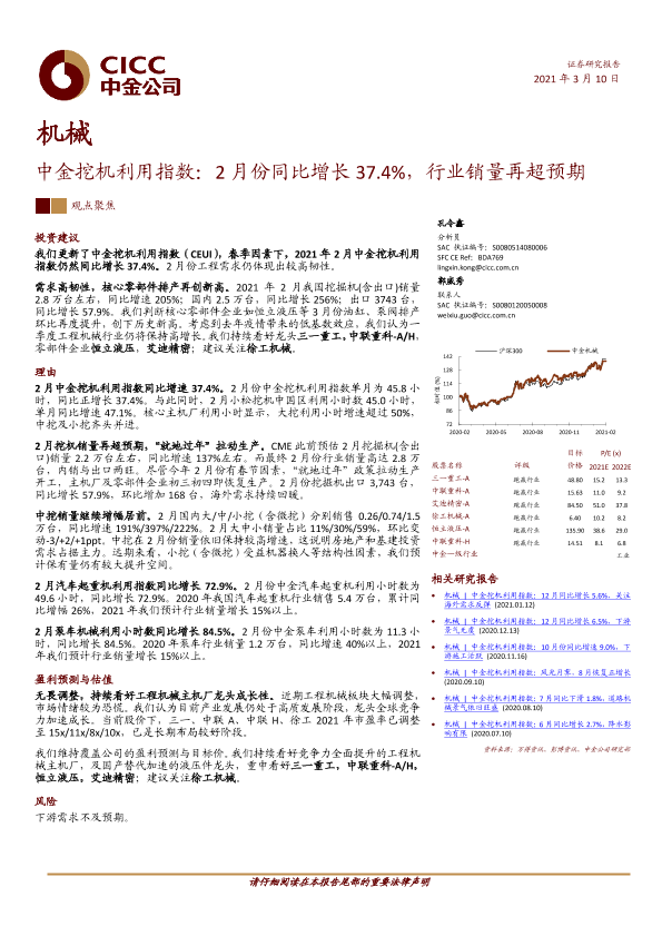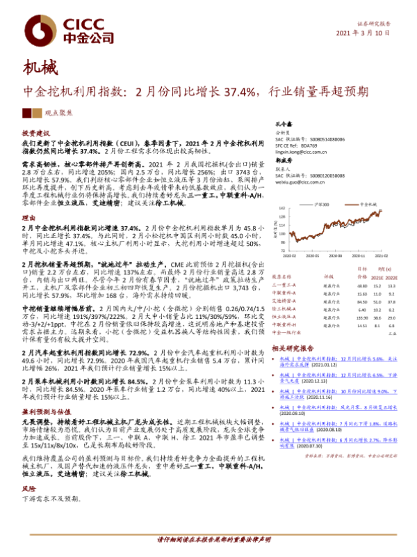 【中金公司】【20210310】中金挖机利用指数:2月份同比增长37.4%,行业销量再超预期-9页