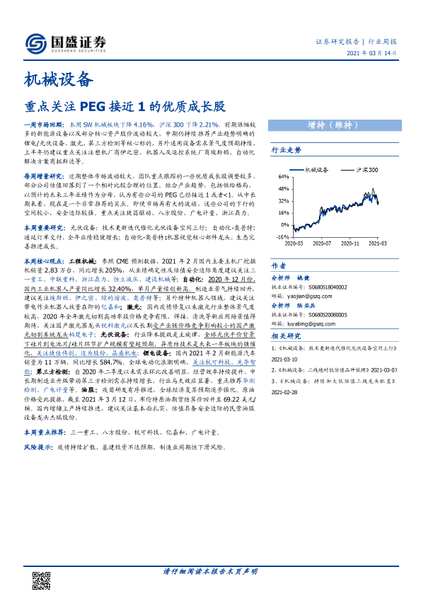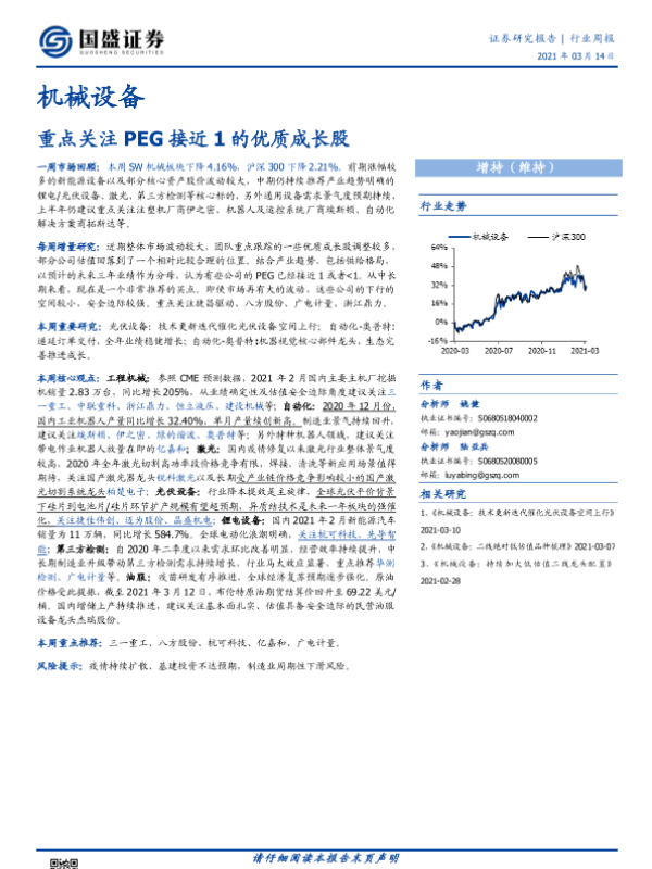 【国盛证券】【20210314】机械设备行业周报:重点关注PEG接近1的优质成长股-13页