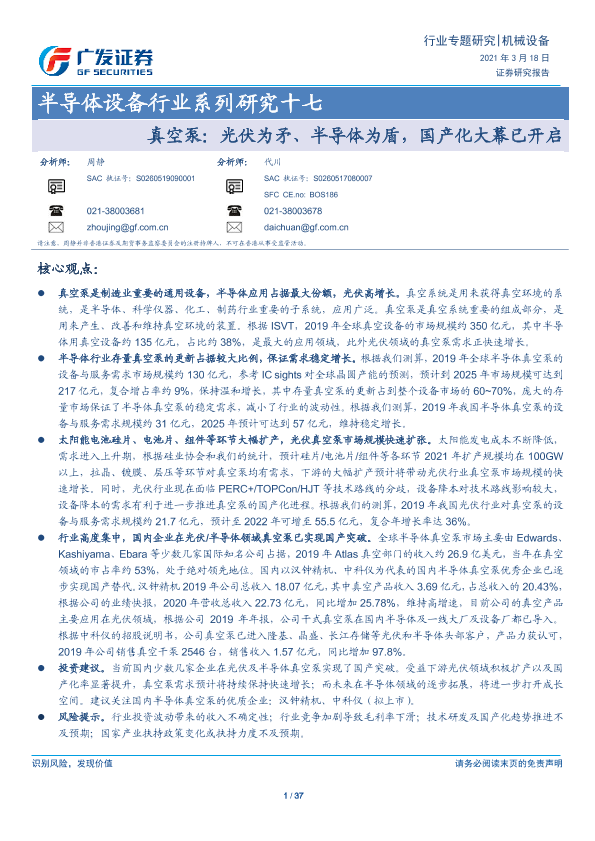 【广发证券】【20210318】真空泵:光伏为矛、半导体为盾,国产化大幕已开启-37页
