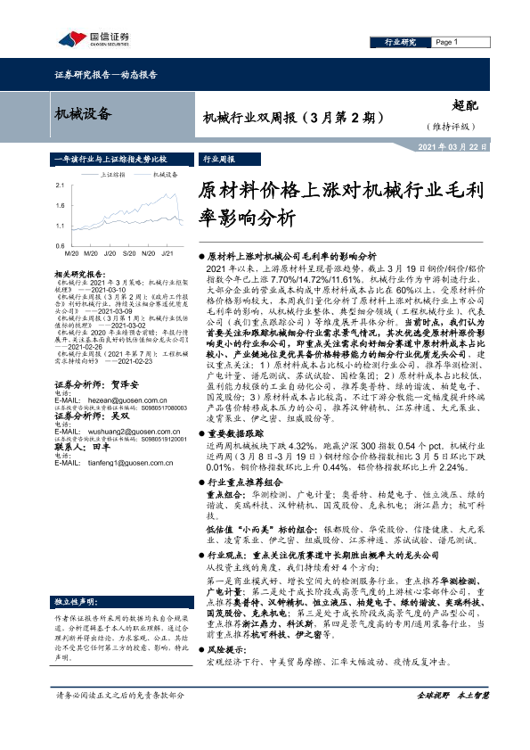 【国信证券】【20210322】20210322-国信证券-机械行业双周报(3月第2期):原材料价格上涨对机械行业毛利率影响分析-19页