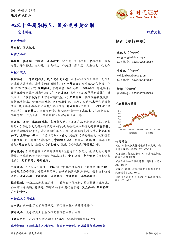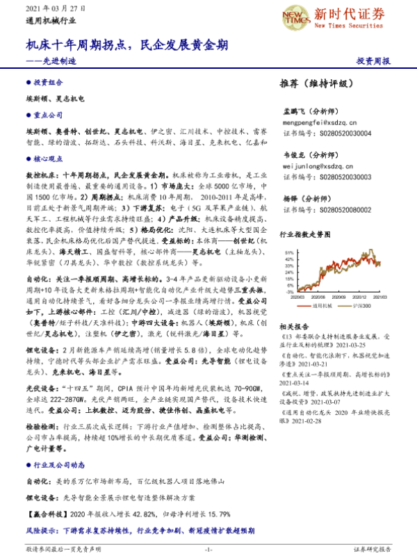 【新时代证券】【20210327】20210327-新时代证券-先进制造投资周报:机床十年周期拐点,民企发展黄金期-13页