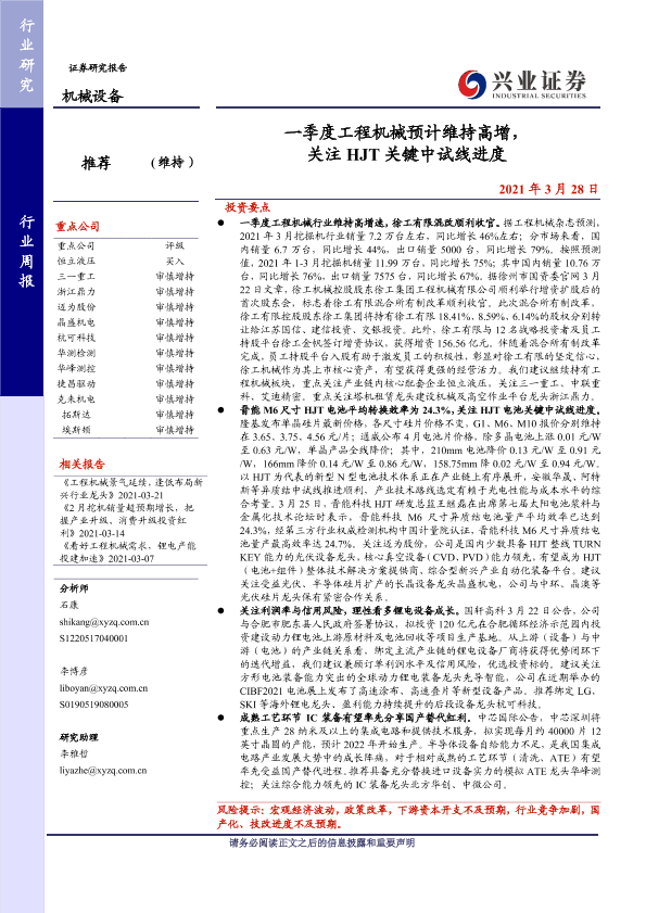 【兴业证券】【20210328】20210328-兴业证券-机械设备行业周报:一季度工程机械预计维持高增,关注HJT关键中试线进度-21页