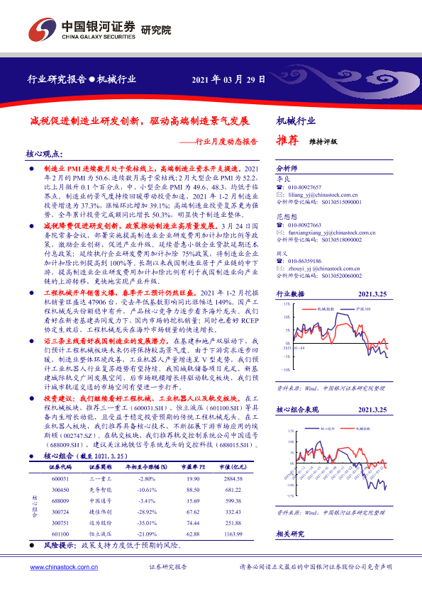 【银河证券】【20210329】20210329-中国银河-机械行业月度动态报告:减税促进制造业研发创新,驱动高端制造景气发展-29页