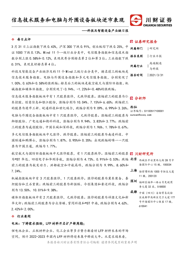 【川财证券】【20210331】科技及智能设备产业链日报:信息技术服务和电脑与外围设备板块逆市表现-3页