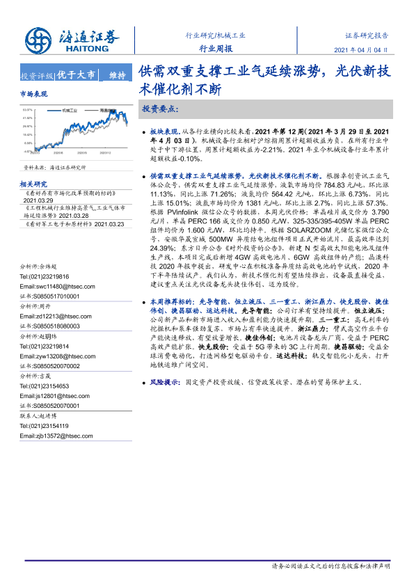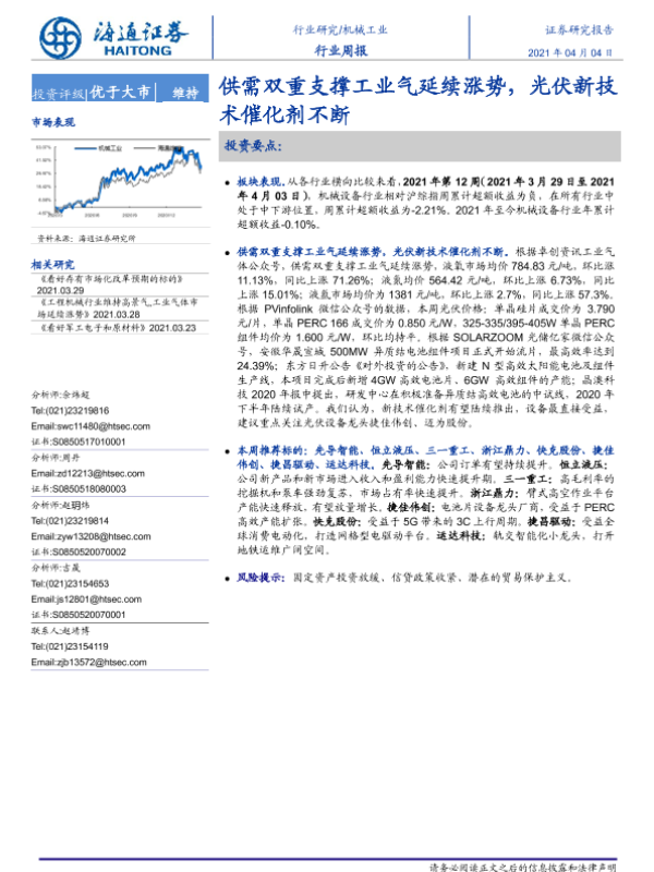 【海通证券】【20210404】20210404-海通证券-机械工业行业周报:供需双重支撑工业气延续涨势,光伏新技术催化剂不断-10页