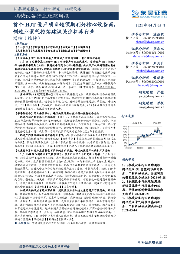 【东吴证券】【20210405】20210405-东吴证券-机械设备行业跟踪周报:首个HJT量产项目超预期利好核心设备商,制造业景气持续建议关注机床行业-20页