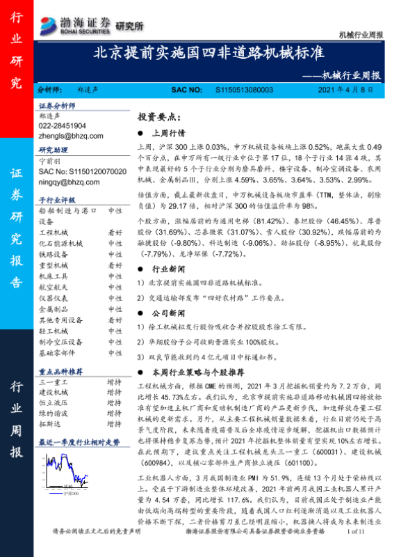 【渤海证券】【20210408】机械行业周报:北京提前实施国四非道路机械标准-11页