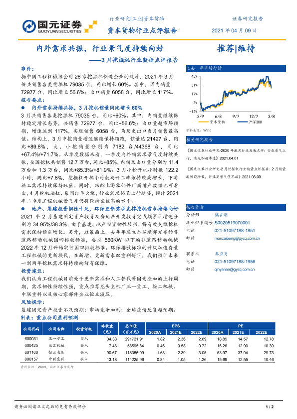 【国元证券】【20210409】3月挖掘机行业数据点评报告:内外需求共振,行业景气度持续向好-2页