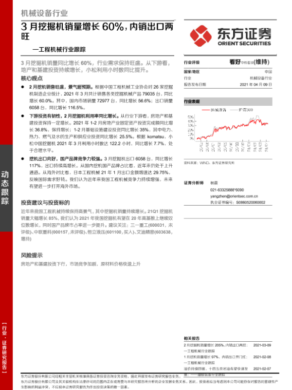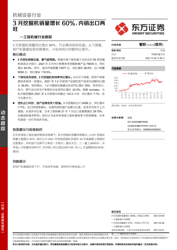 【东方证券】【20210409】20210409-东方证券-工程机械行业跟踪:3月挖掘机销量增长60%,内销出口两旺-6页