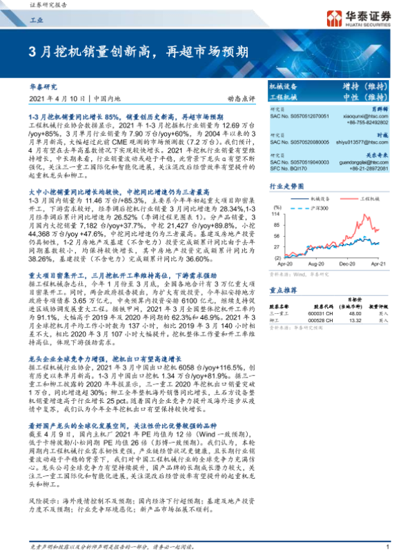 【华泰证券】【20210410】3月挖机销量创新高,再超市场预期-8页