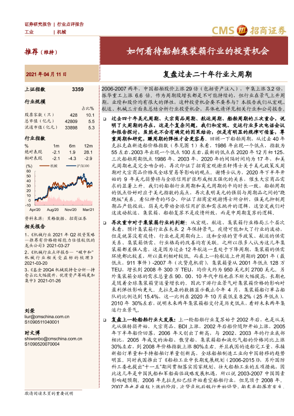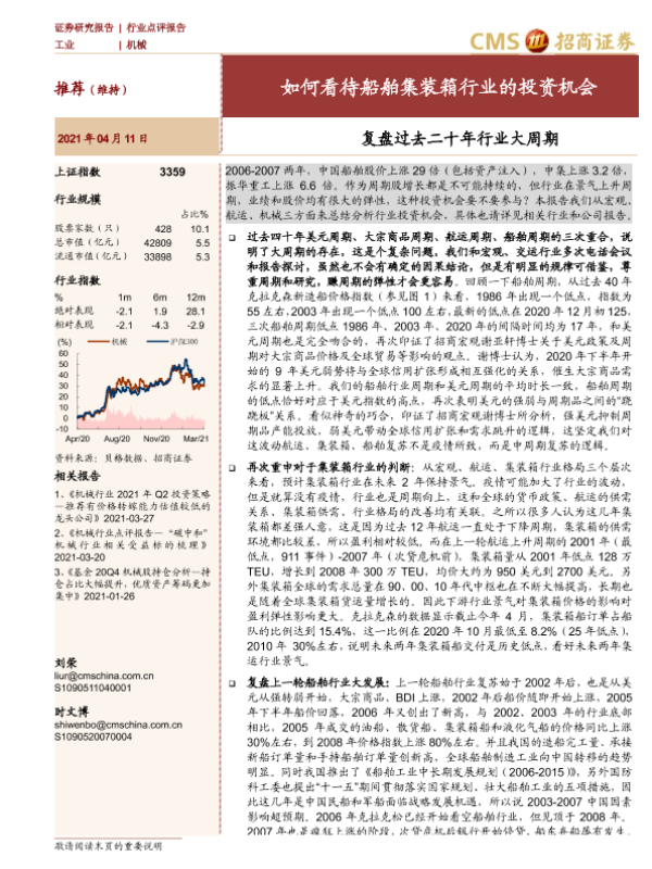 【海通证券】【20210411】机械行业点评报告:复盘过去二十年行业大周期:如何看待船舶集装箱行业的投资机会-4页