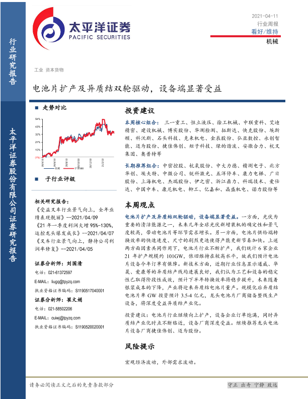 【太平洋证券】【20210411】机械行业周报:电池片扩产及异质结双轮驱动,设备端显著受益-12页