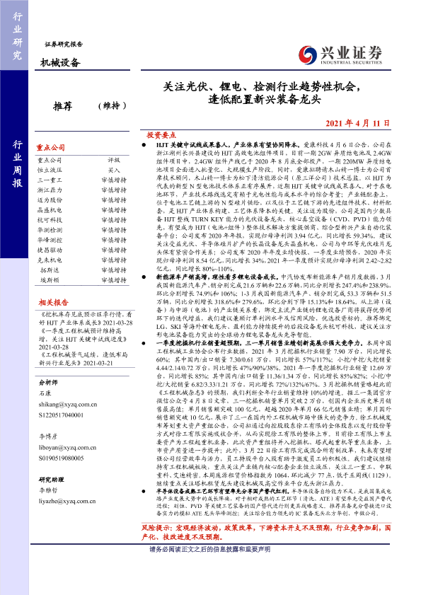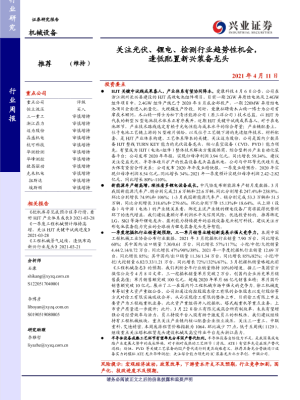 【兴业证券】【20210411】关注光伏、锂电、检测行业趋势性机会,逢低配置新兴装备龙头-22页