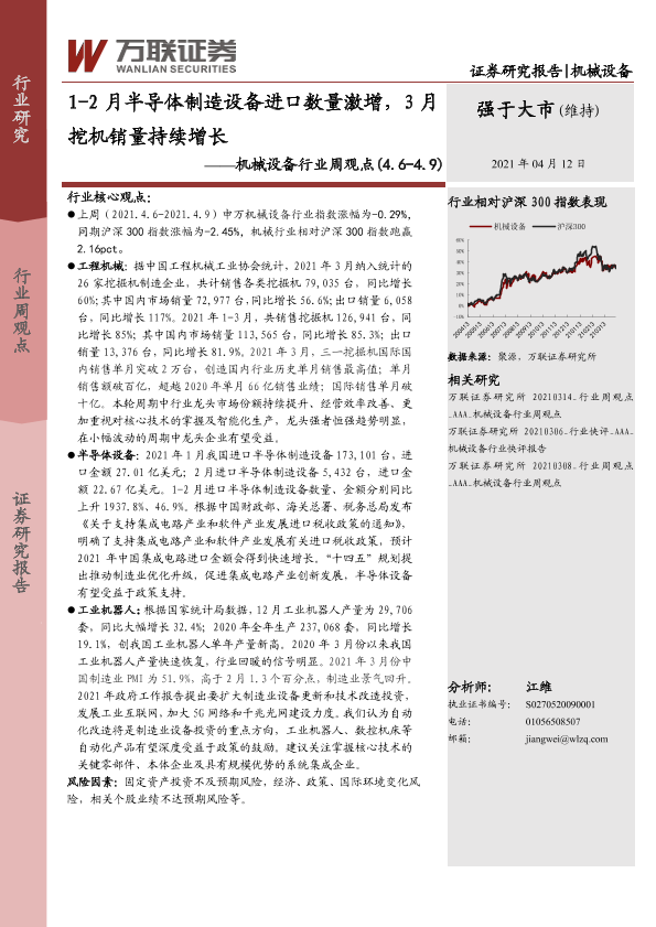 【万联证券】【20210412】20210412-万联证券-机械设备行业周观点:1-2月半导体制造设备进口数量激增,3月挖机销量持续增长-11页