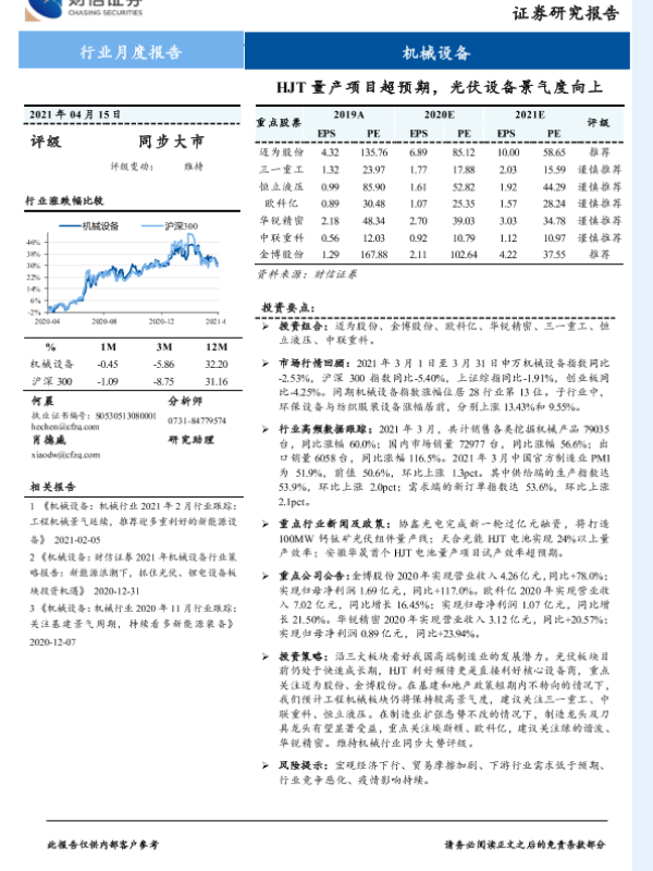 【财信证券】【20210415】HJT量产项目超预期,光伏设备景气度向上-18页