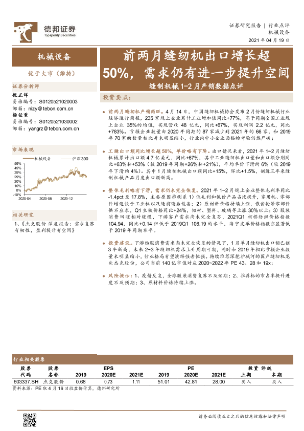 【德邦证券】【20210419】20210419-德邦证券-缝制机械1-2月产销数据点评:前两月缝纫机出口增长超50%,需求仍有进一步提升空间-2页