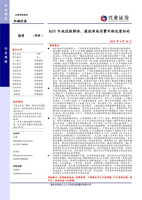 【兴业证券】【20210418】20210418-兴业证券-机械设备行业周报:HJT中试佳报频传,逢低布局消费升级优质标的-24页