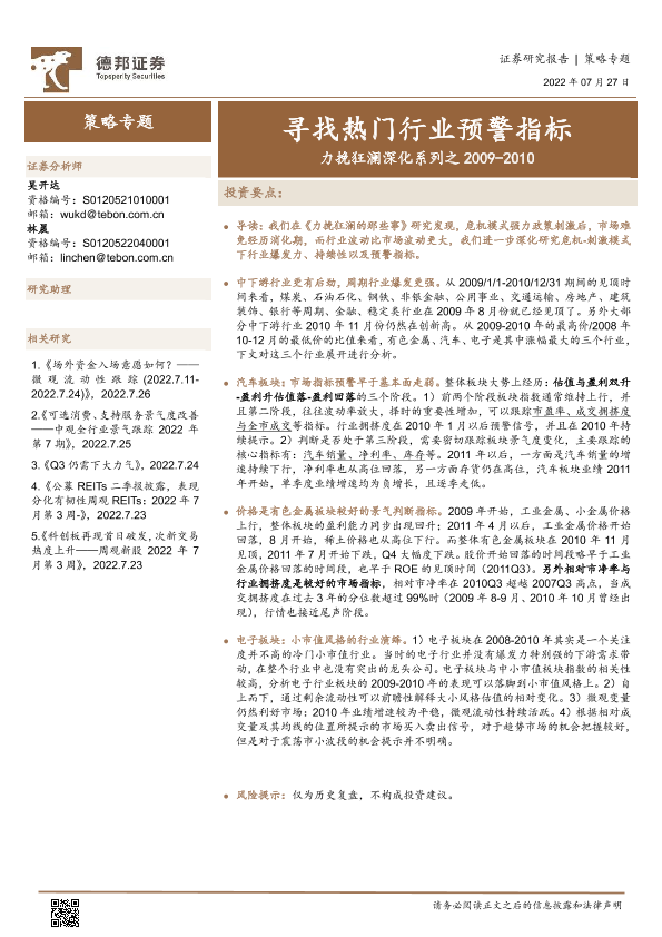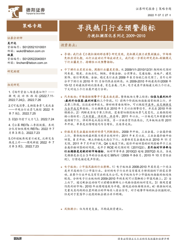 【德邦证券】【20220727】策略专题:力挽狂澜深化系列之2009_2010,寻找热门行业预警指标-16页