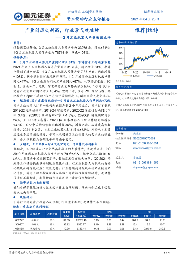 【国元证券】【20210420】3月工业机器人产量数据点评:产量创历史新高,行业景气度延续-4页