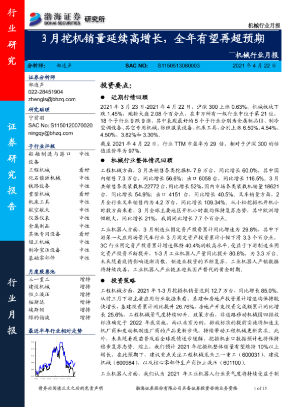 【渤海证券】【20210422】机械行业月报:3月挖机销量延续高增长,全年有望再超预期-15页