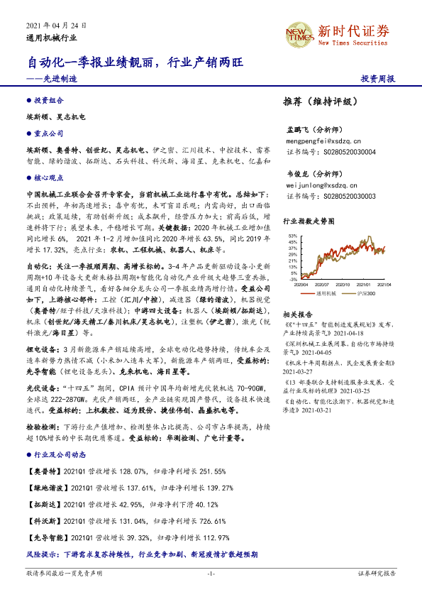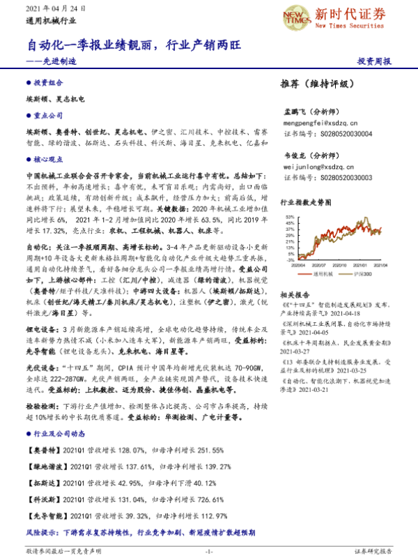 【新时代证券】【20210424】20210424-新时代证券-先进制造投资周报:自动化一季报业绩靓丽,行业产销两旺-14页