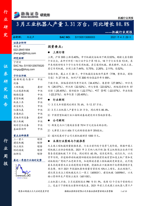 【渤海证券】【20210429】机械行业周报:3月工业机器人产量3.31万台,同比增长80.8%-10页
