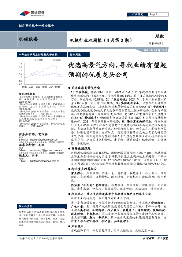 【国信证券】【20210429】机械行业双周报(4月第2期):优选高景气方向,寻找业绩有望超预期的优质龙头公司-18页
