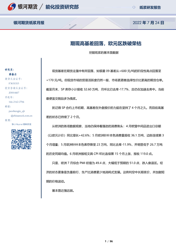 【银河期货】【20220724】纸浆月报:期现高基差回落,欧元区跌破荣枯-96页