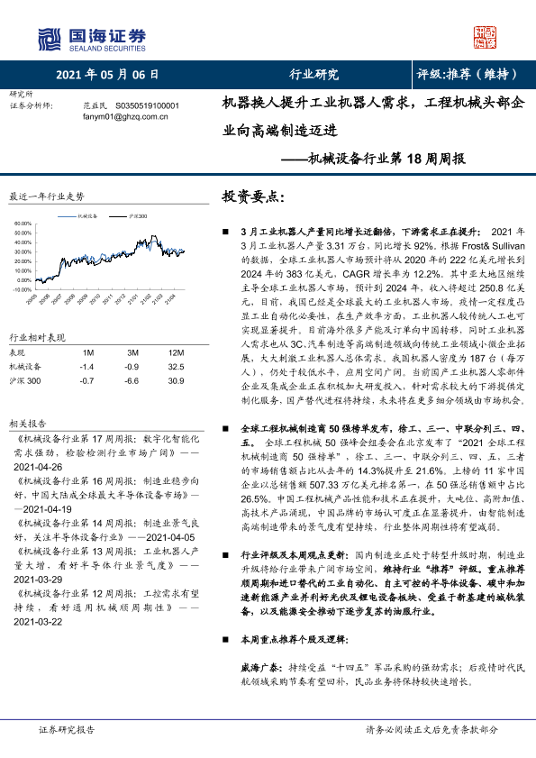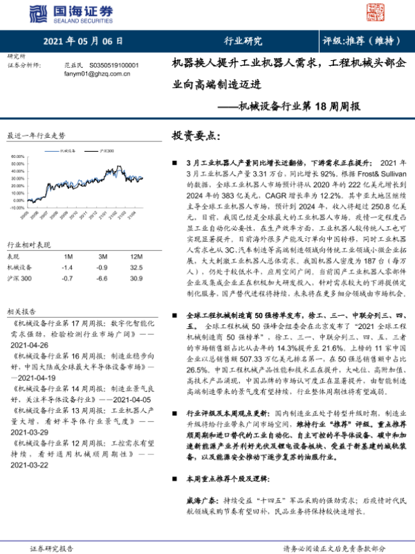 【国海证券】【20210506】机械设备行业第18周周报:机器换人提升工业机器人需求,工程机械头部企业向高端制造迈进-21页