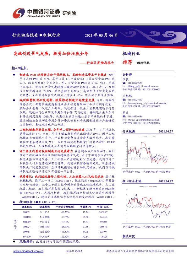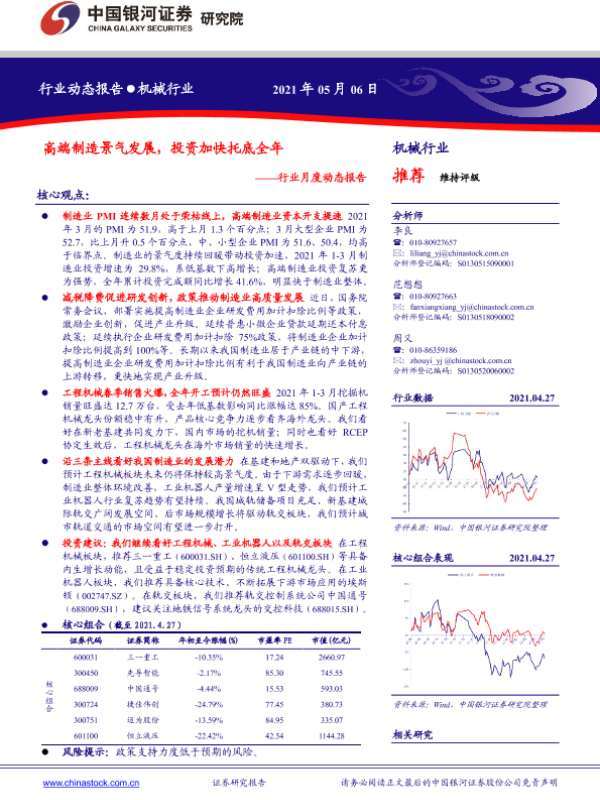 【银河证券】【20210506】机械行业月度动态报告:高端制造景气发展,投资加快托底全年-30页