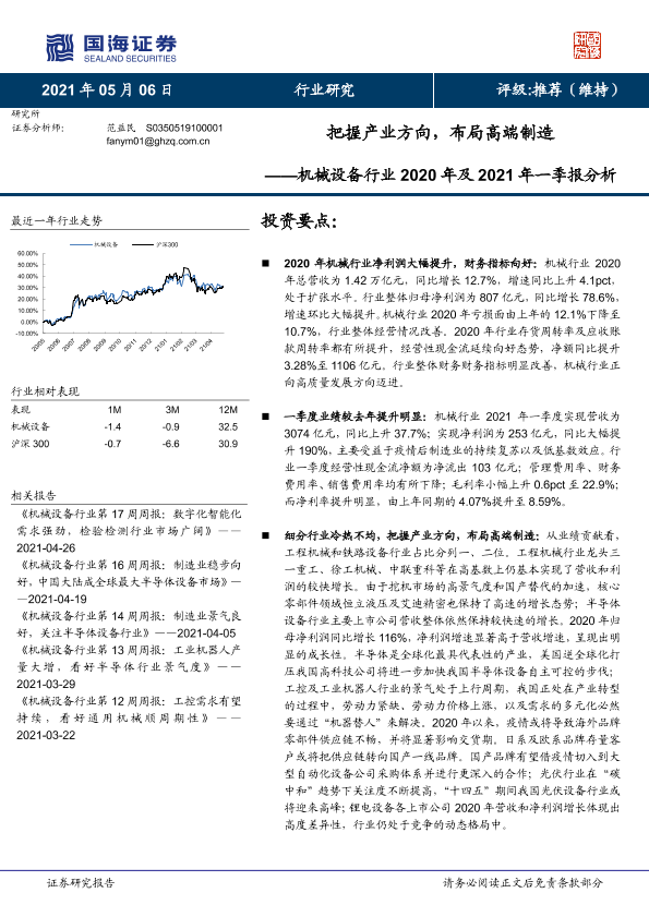 【国海证券】【20210506】机械设备行业2020年及2021年一季报分析:把握产业方向,布局高端制造-19页