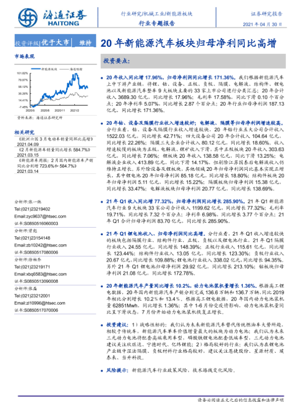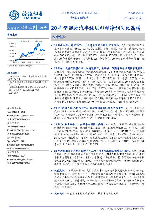 【海通证券】【20210430】20210430-海通证券-机械工业行业:20年新能源汽车板块归母净利同比高增-16页