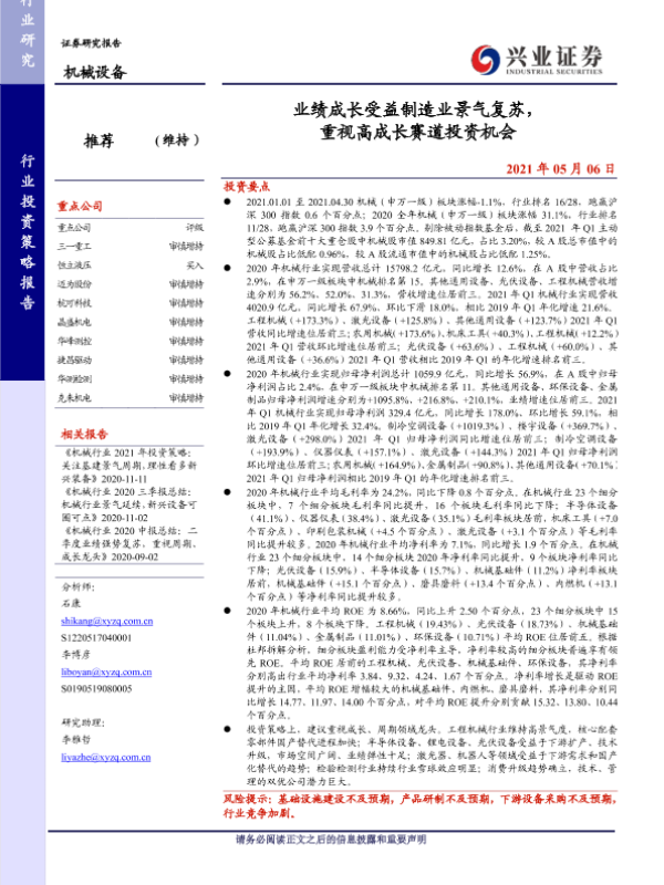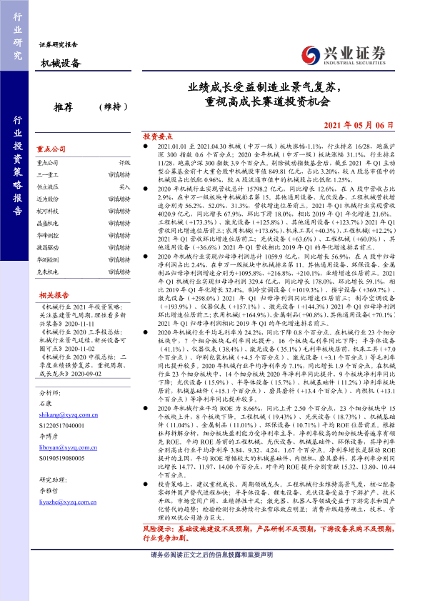 【兴业证券】【20210506】业绩成长受益制造业景气复苏,重视高成长赛道投资机会-57页