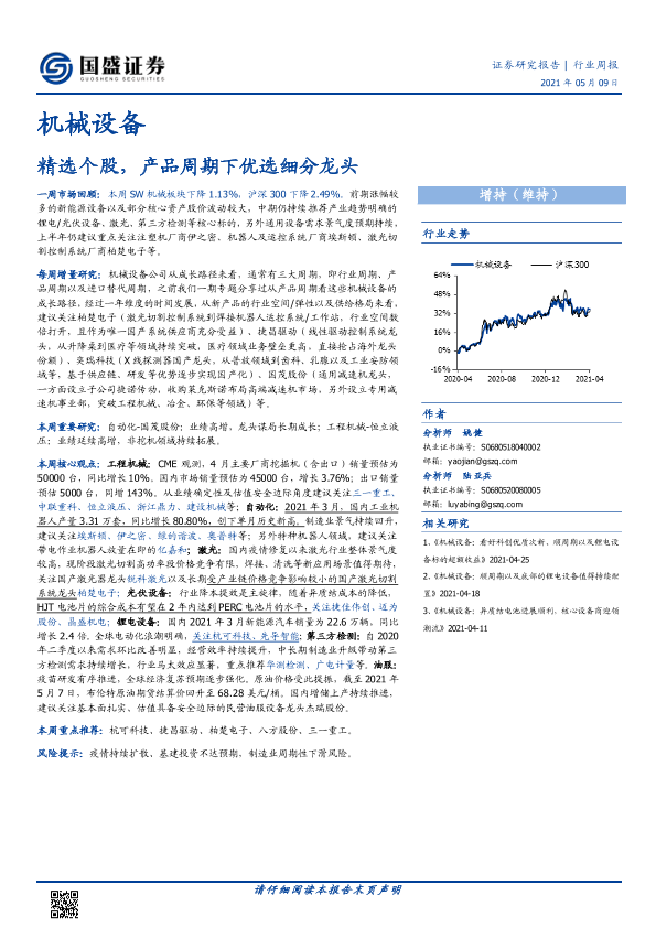 【国盛证券】【20210509】20210509-国盛证券-机械设备行业周报:精选个股,产品周期下优选细分龙头-13页