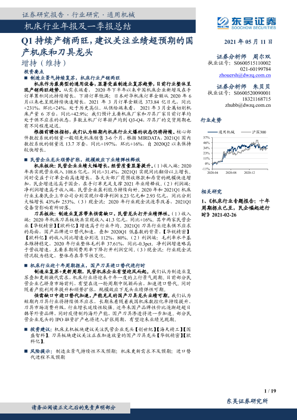 【东吴证券】【20210511】20210511-东吴证券-机床行业年报及一季报总结:Q1持续产销两旺,建议关注业绩超预期的国产机床和刀具龙头-19页