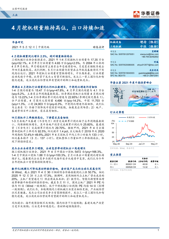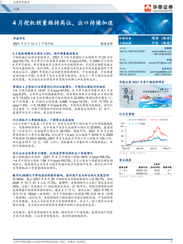 【华泰证券】【20210512】4月挖机销量维持高位,出口持续加速-8页