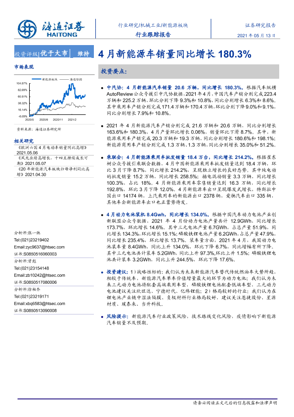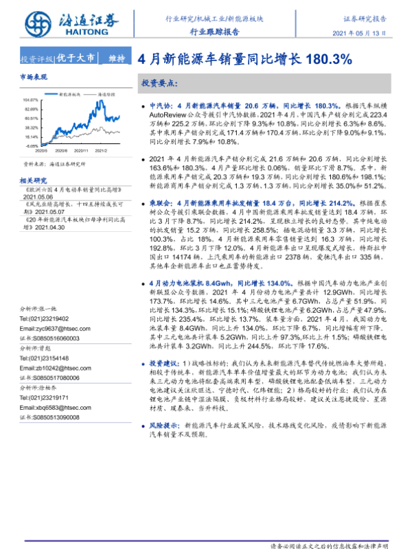 【海通证券】【20210513】机械工业行业跟踪报告:4月新能源车销量同比增长180.3%-5页