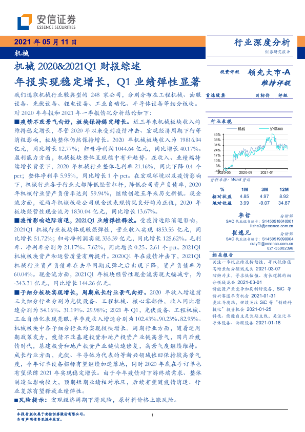 【安信证券】【20210511】机械2020&2021Q1财报综述:年报实现稳定增长,Q1业绩弹性显著-41页