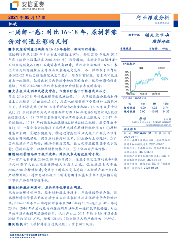 【安信证券】【20210517】一周解一惑:对比16~18年,原材料涨价对制造业影响几何-26页