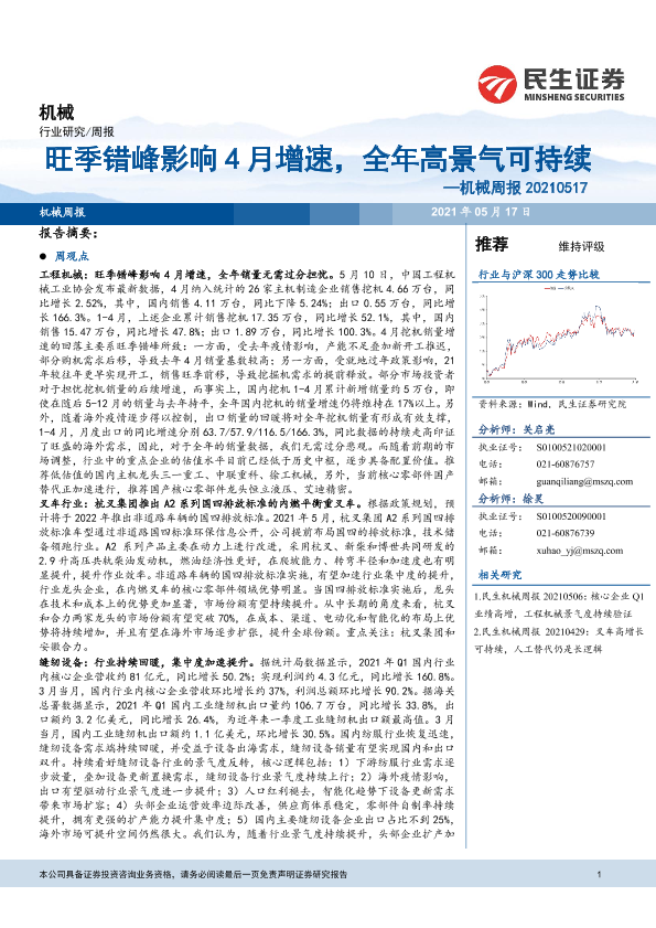 【民生证券】【20210517】20210517-民生证券-机械周报:旺季错峰影响4月增速,全年高景气可持续-20页