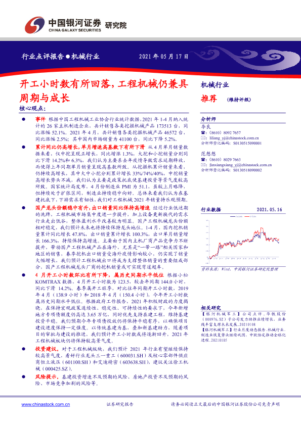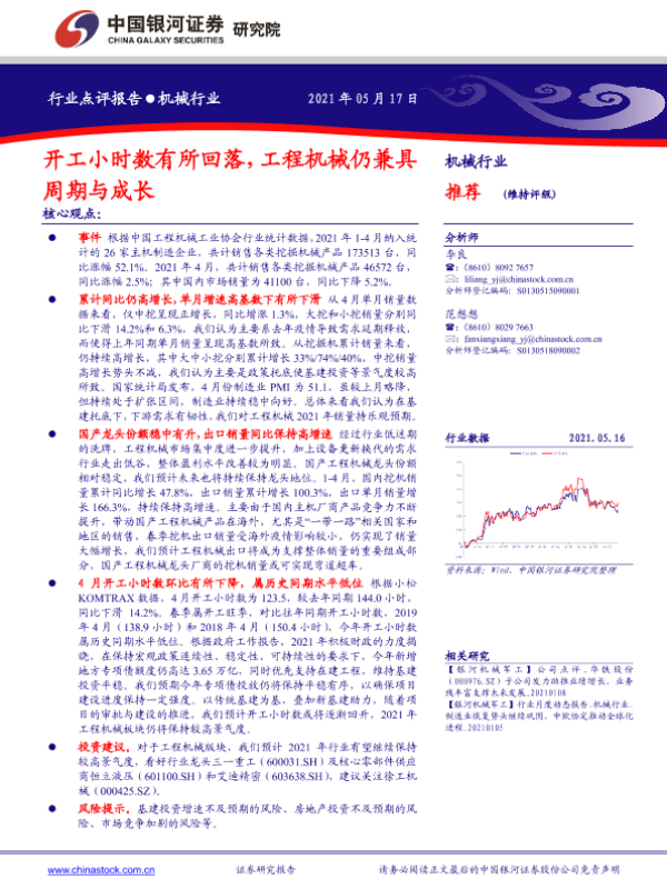 【银河证券】【20210517】机械行业:开工小时数有所回落,工程机械仍兼具周期与成长-2页