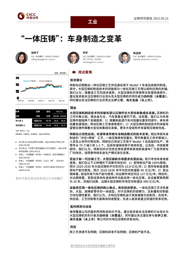 【中金公司】【20210521】工业:“一体压铸”,车身制造之变革-27页