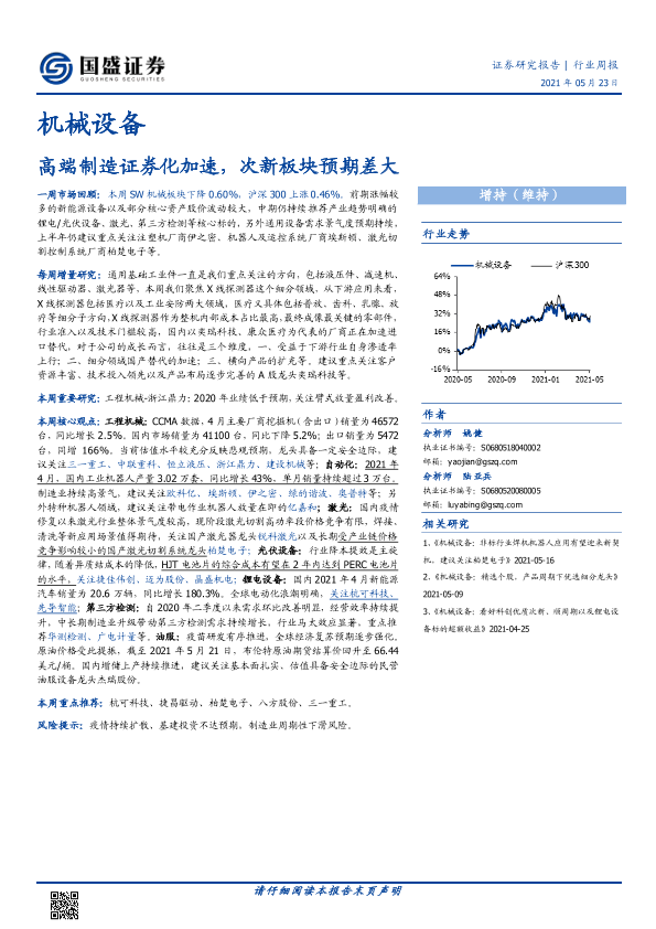 【国盛证券】【20210523】20210523-国盛证券-机械设备行业周报:高端制造证券化加速,次新板块预期差大-11页