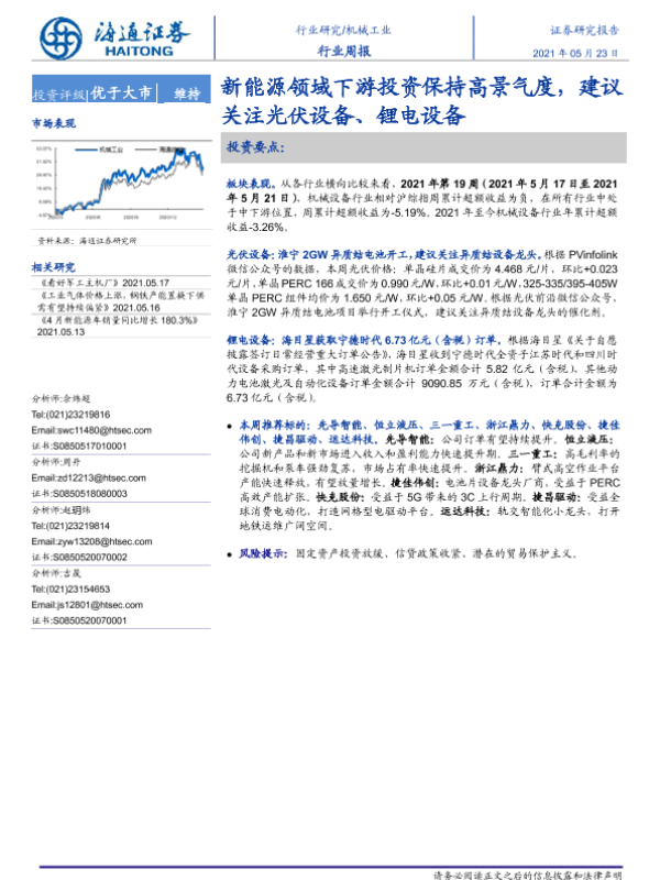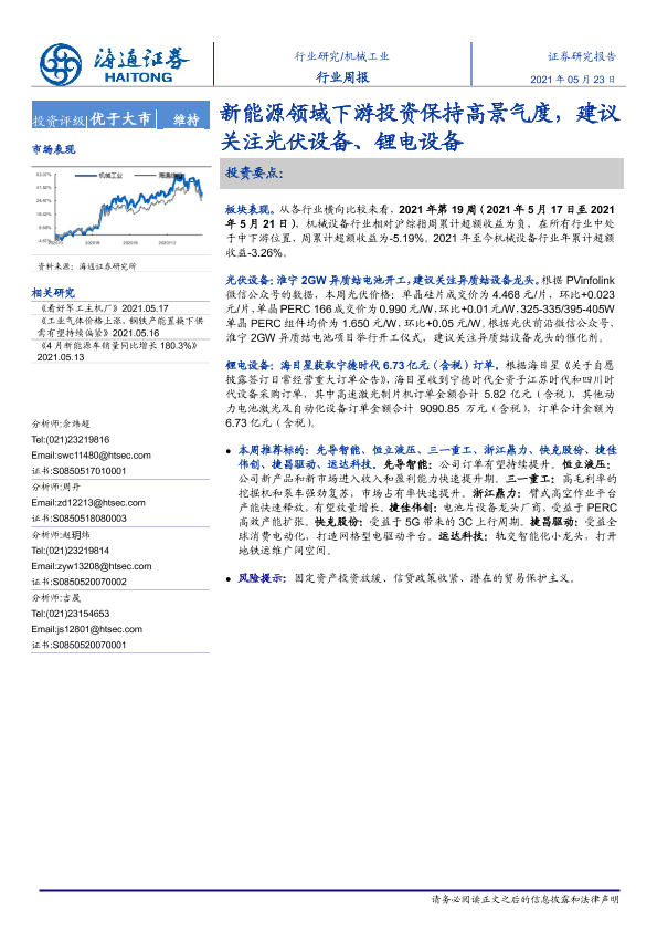 【海通证券】【20210523】20210523-海通证券-机械工业行业周报:新能源领域下游投资保持高景气度,建议关注光伏设备、锂电设备-10页